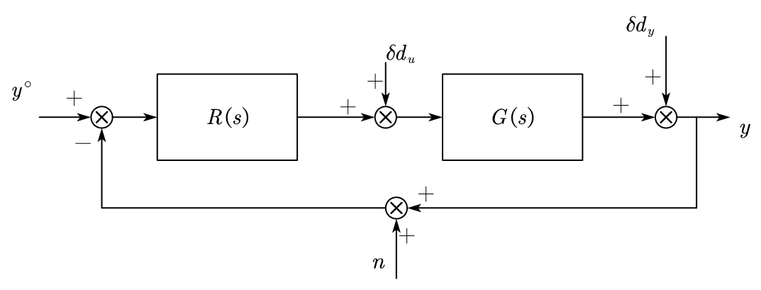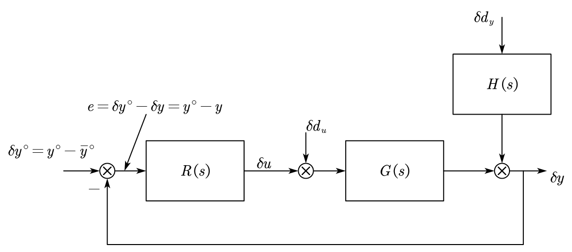 Our target is to design a regulator \(R(s)\) to control the input \(\delta u\) within \(\delta y\) is affected by the load disturbance \(\delta d_u\) and process disturbance \(\delta d_y\), and guarantee the stability and performance of the system.