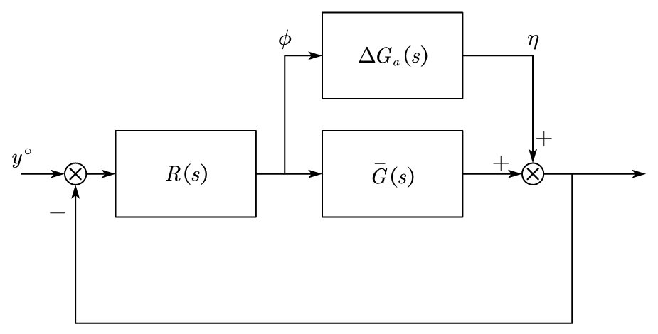 And we designed an \(R(s)\) to make this closed loop nominal model A.S.. We want to research the stability of this nominal model at \(G(s) \neq \bar G(s)\).