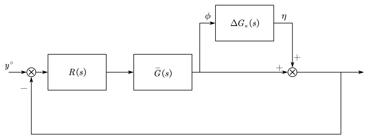 To get the condition above, we can get \(|\bar K(j\omega)| < \frac{1}{|\Delta G_a(j\omega)|}, \forall \omega\) \(\Rightarrow\) \(|\bar K(j\omega)|\) is small when \(|\Delta G_a(j\omega)|\) is big (typically in low frequency). And because \(|\bar K(j\omega)| = |R(s)\bar||S(s)|\), then \(M_S\) is small.