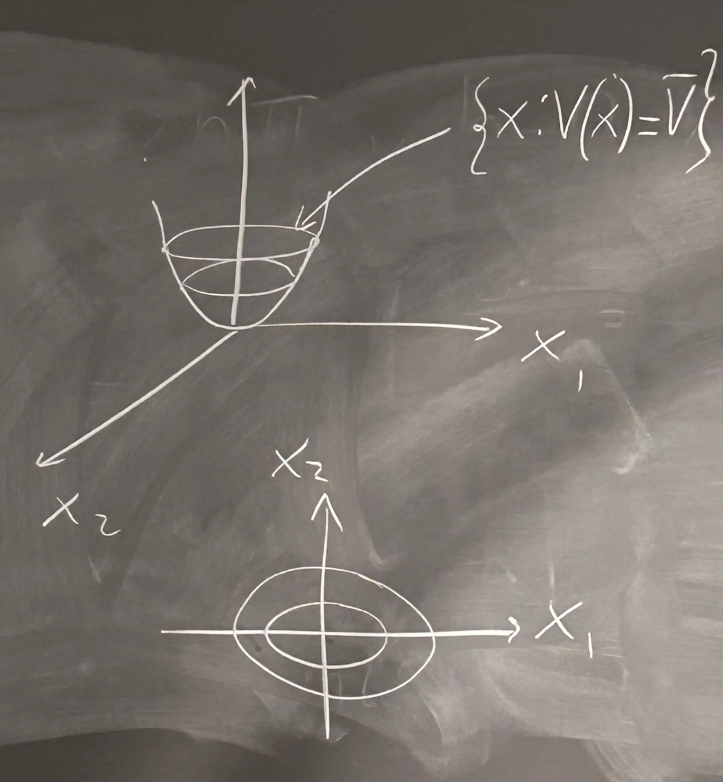 Lever surface of \(V\) positive definite is: \(\{x\in \mathbb R^n:V(x) = \bar V\}\)