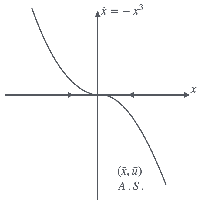 - A.S. \(\to\) if \(\dot V(x)\) is negative definite in \(\bar x\)