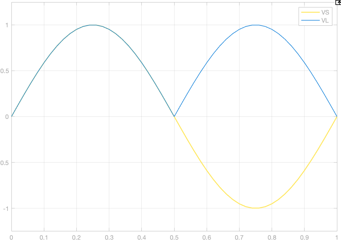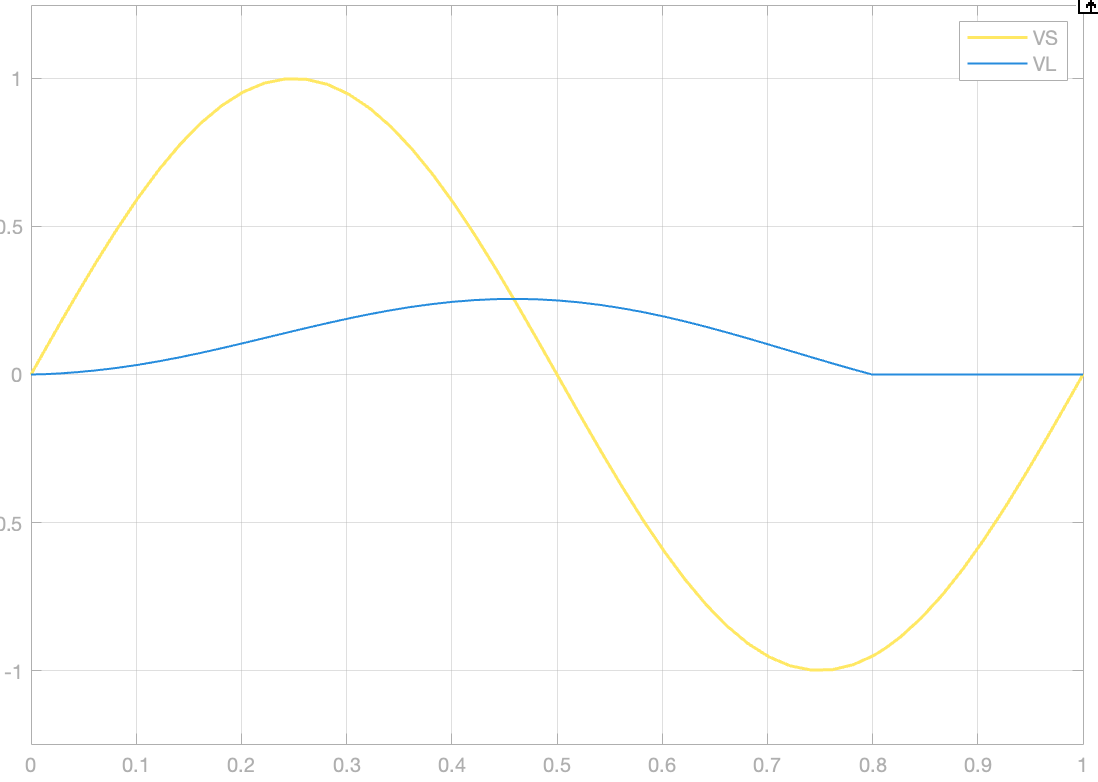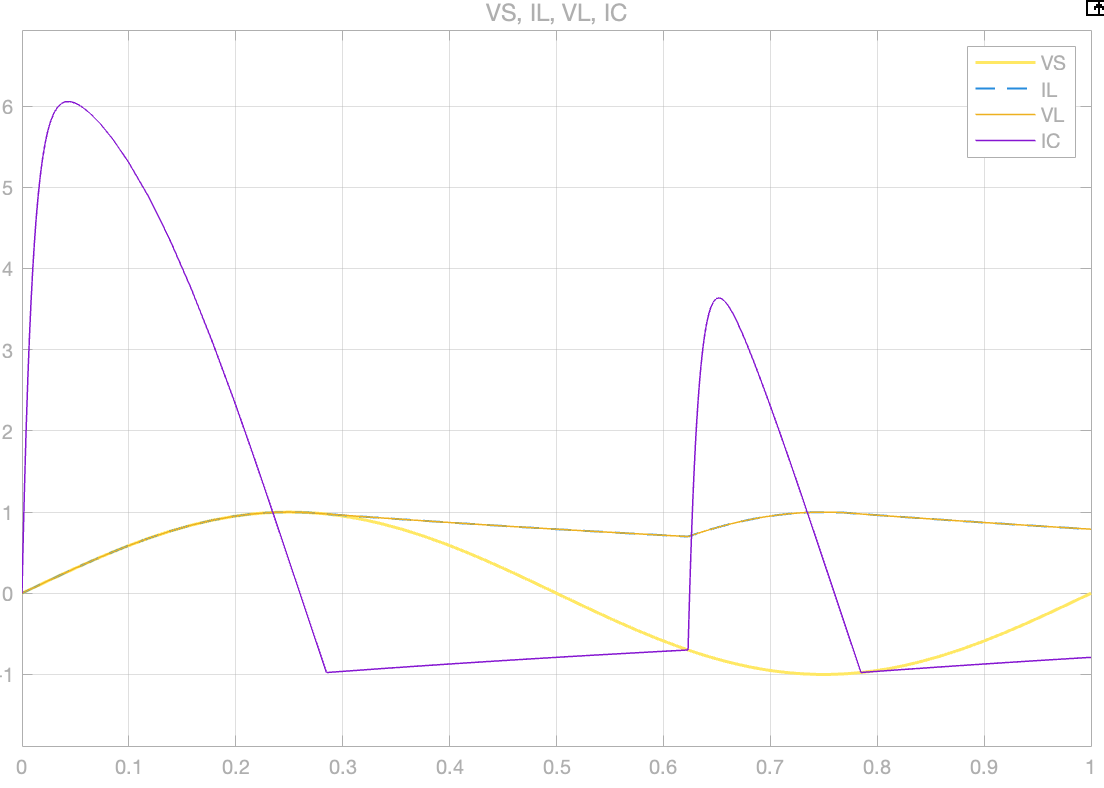 Within the initial current set to \(0.5A\), the voltage and current have the figure below: