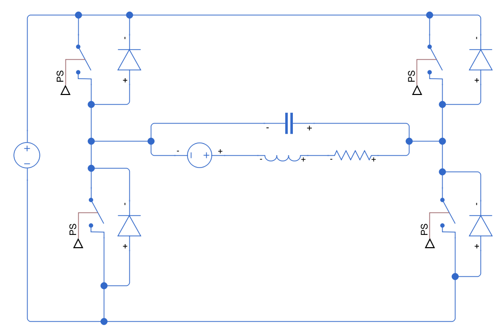 The full bridge contains 2 arms, within the load connected the middle part together: