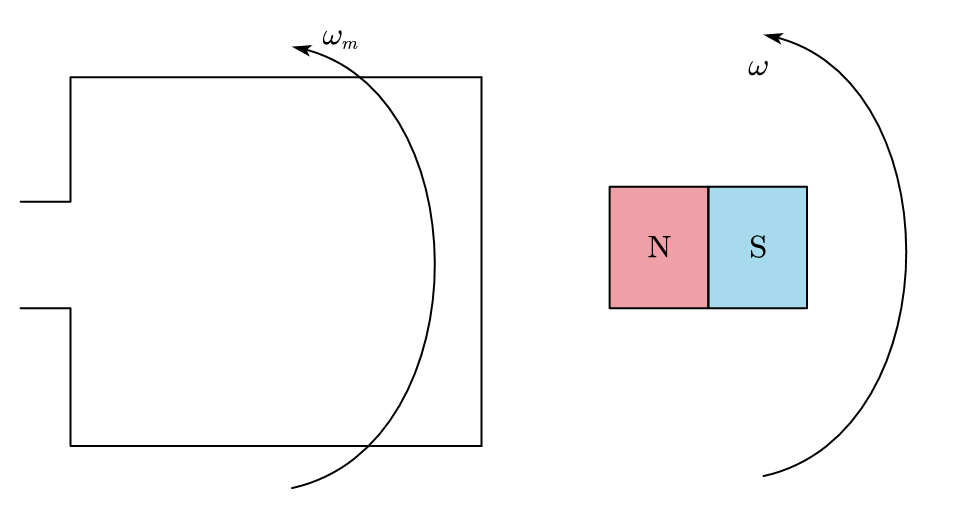 To better explain induction machine, we can look at a rotating winding and magnetic model,