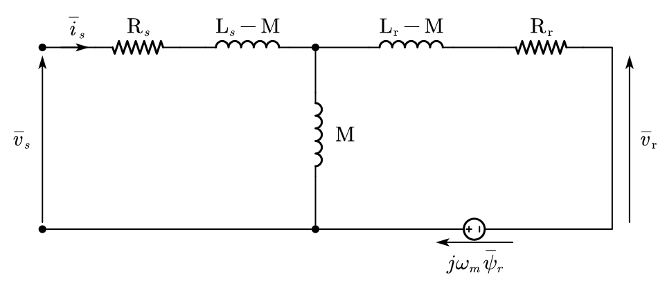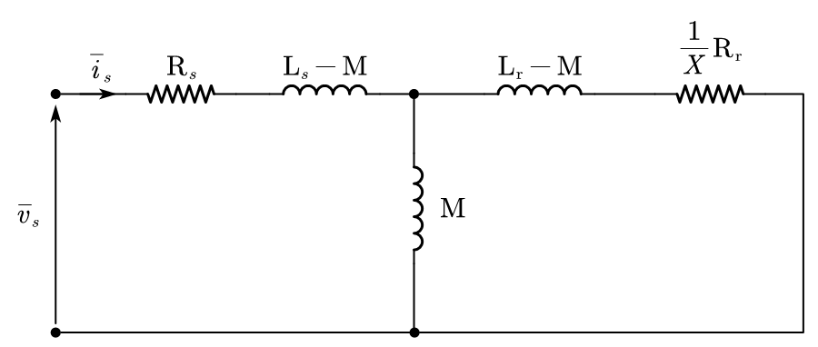 Since we know that in the induction machine, the rotor circuit is short circuited, thus we have \(\bar v_r = 0\):