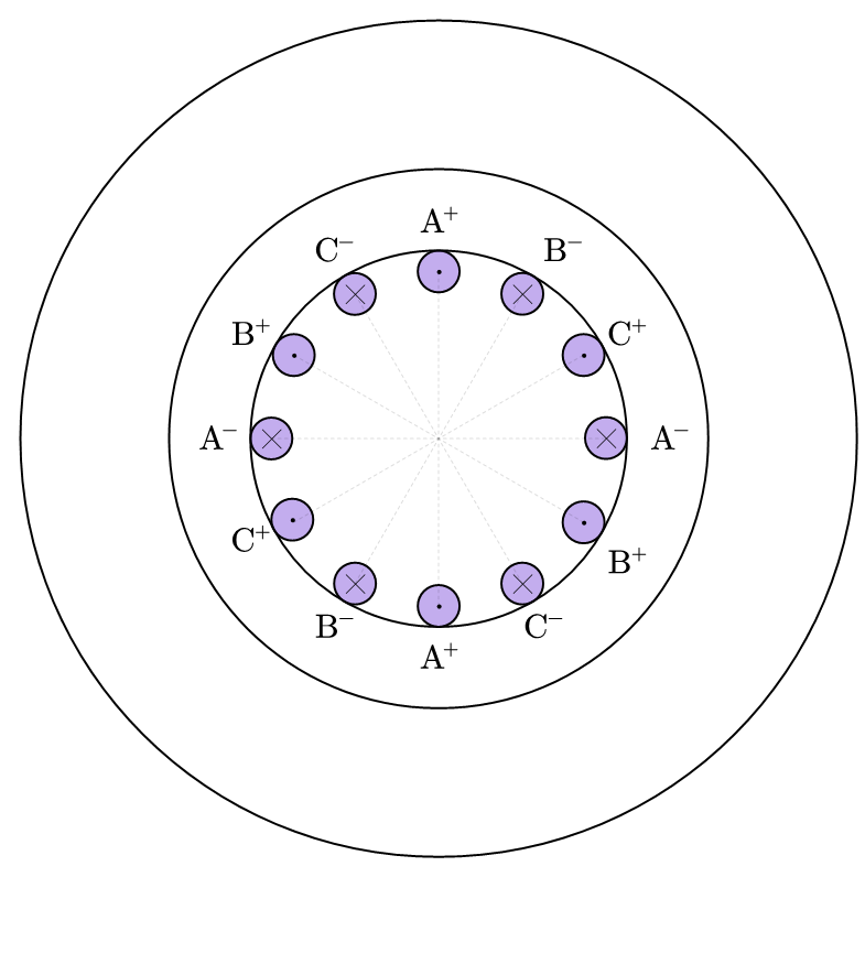 We consider the number of pole pairs \(n_p\), and we look back at the machine structure,