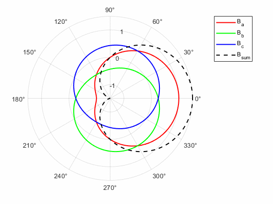 We can find for each winding, when the current moves for \(180^\circ\), the current vector will change the direction, which will also rotates for \(180^\circ\) degree,